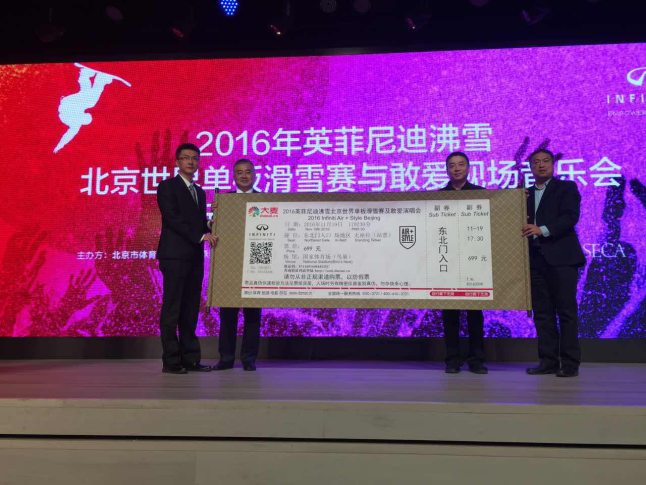 10月10日,2016年英菲尼迪沸雪北京世界单板滑雪赛与敢爱现场音乐会新闻发布会在三里屯CHAO酒店举行。赛事组委会宣布30位世界顶级单板滑手和中国最具人气的电音DJ、音乐人将于11月19日齐聚“鸟巢”,呈现一场极限运动与电子音乐完美融合的视听盛宴,赛事门票即日起在大麦网开启预售。北京市体育竞赛管理中心副主任邵晓军、北京市体育竞赛管理中心副主任周尚海、国家体育场有限责任公司党委书记相军和英菲尼迪、红牛等赞助商代表以及近60家媒体出席了发布会。
