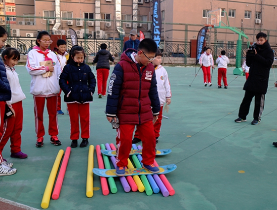 参加活动的学生大多数没有滑过雪。实践课中,在教练的指导下,学生们学着穿戴装备,比赛穿雪鞋、绑护具、持雪杖,满怀期待地上了“雪场”。在蓝天白雪之间,在小小的“雪道”上,学生们从不会到会、从不断跌倒到成功地滑完雪道,学生们在刺激、有趣的运动中慢慢地掌握了滑雪技能,磨练了个人意志,领会了挑战自我的精神。