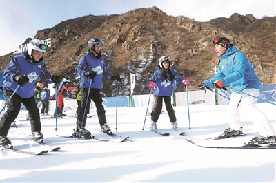 冬奥冠军韩晓鹏(右一)在崇礼开起滑雪课