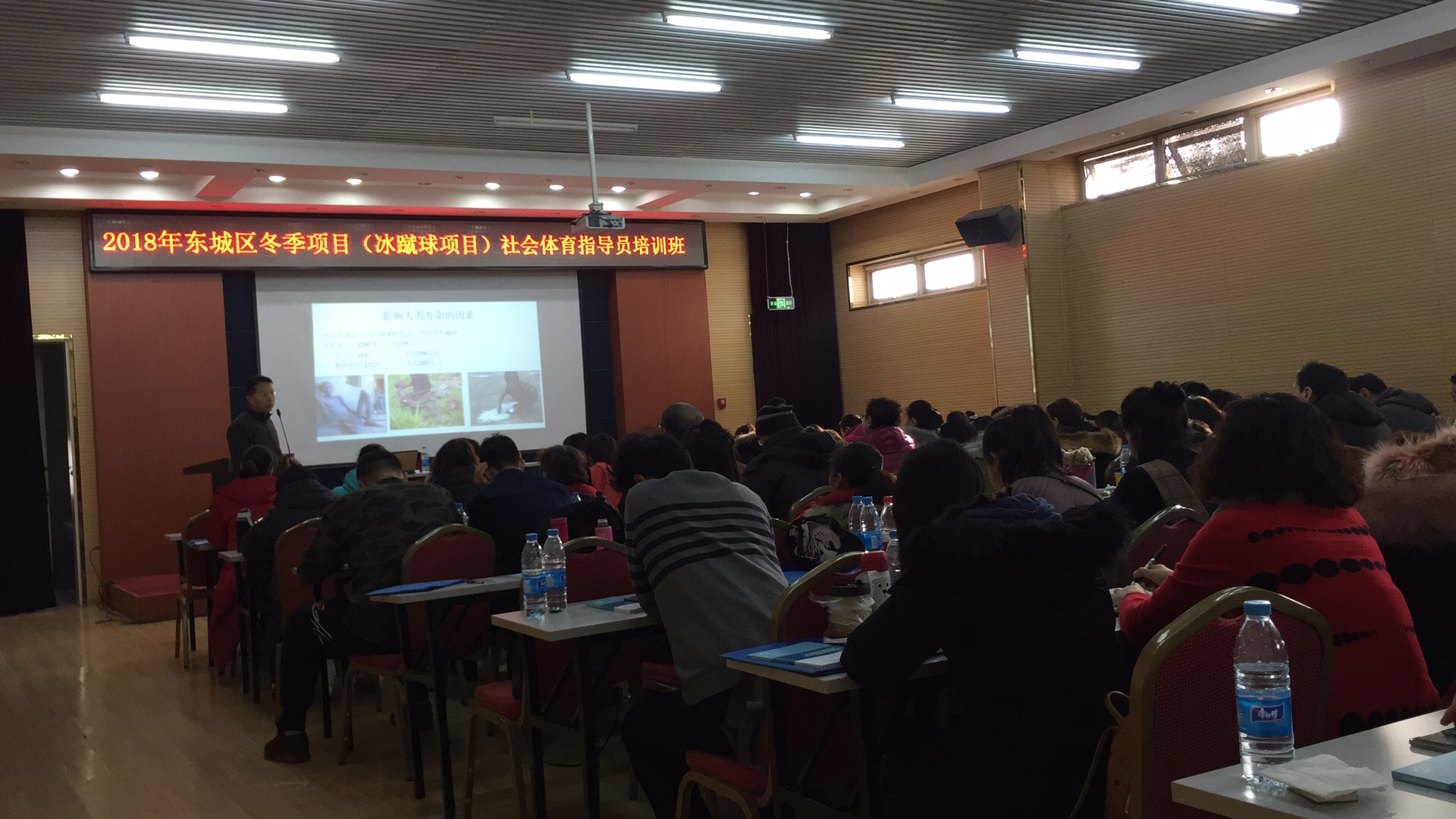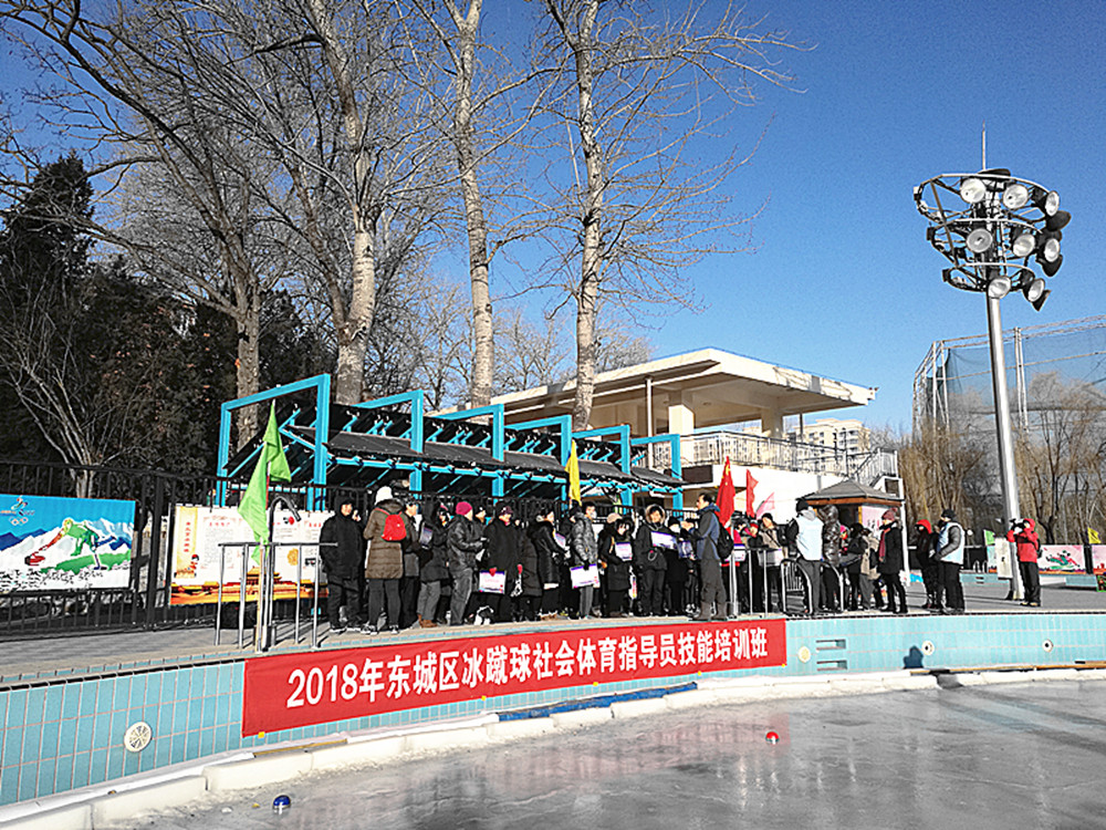 2018年1月19日,在地坛体育馆举办东城区冬季项目(冰蹴球)社会体育指导员培训班。来自全区17个街道的80名冰蹴球爱好者参加了此次培训。参加此次培训人员是经过1月9日在青年湖公园通过冰蹴球技能培训合格人员。