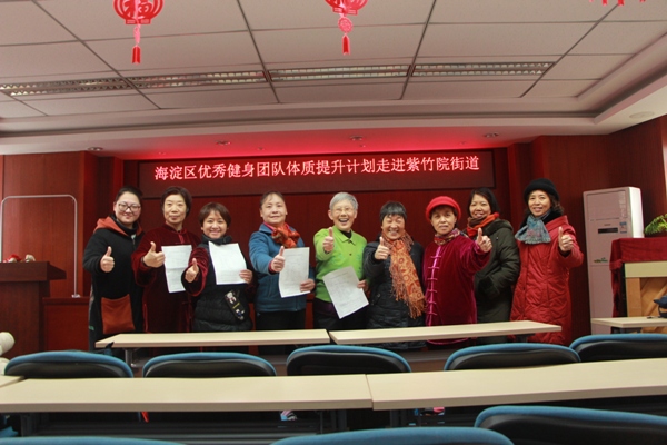 紫竹院街道的紫竹社区太极队、车道沟社区轻舞飞燕舞蹈队、车南里社区夕阳美广场舞健身队、北京理工大学社区太极队、厂洼一社区腰鼓队、厂洼二社区麦钟桥康乐队、韦伯豪社区志愿者队、法华寺健身队、魏北社区志愿者团队、厂洼社区舞蹈队、万寿山庄社区篮球队、中青院社区舞动(柔力球)健身队、兵器舞蹈队等16支健身团队和紫竹院地区的广大居民共计255人完成了本次测试。