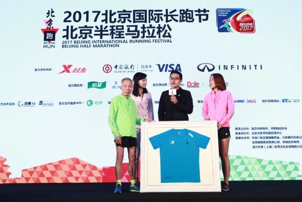 发布会上,组委会将今年的比赛服赠送给了81岁高龄的跑友汤伯成。汤老是“北京跑”的忠实粉丝,去年首次参加半马就取得了不俗的完赛成绩。他今年将继续和年轻人一起从天安门广场起跑,感受奔跑的快乐。组委会还分别向特步、中国银行VISA卡、东风英菲尼迪汽车有限公司、华润怡宝饮料(中国)有限公司、北京棒约翰餐饮发展有限责任公司、雷诺表业有限公司、都乐、众安保险等企业颁发了突出贡献奖奖盘,以表彰和感谢上述企业对赛事的支持。