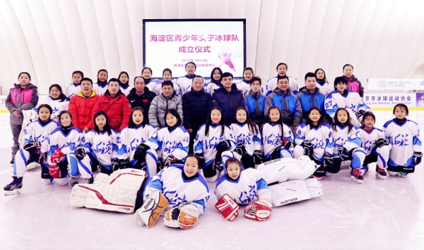 1月14日,海淀区青少年女子冰球队成立仪式在启迪冰场成功举办,这也是北京市成立的首支区级青少年女子冰球队。海淀区体育局相关领导及冰球队教练组、全体队员出席了成立大会。大会宣布了领队、教练组任命,寒假集训计划及2018年全国青少年“未来之星”冬季阳光体育大会参赛队员名单。随后,海淀区青少年女子冰球队进行了首堂训练课。